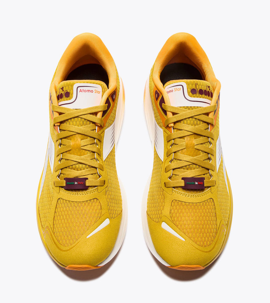 The Atomo Star represents the next evolution of Diadora’s Made in Italy performance line, combining precision craftsmanship with cutting-edge innovation. Engineered with ANIMA N2 technology for enhanced rebound and responsiveness, this versatile super trainer delivers lightweight cushioning for daily runs and long-distance races alike. From training miles to race day, the Atomo Star brings balance, comfort, and speed—all with the craftsmanship of Italian hand-assembly.