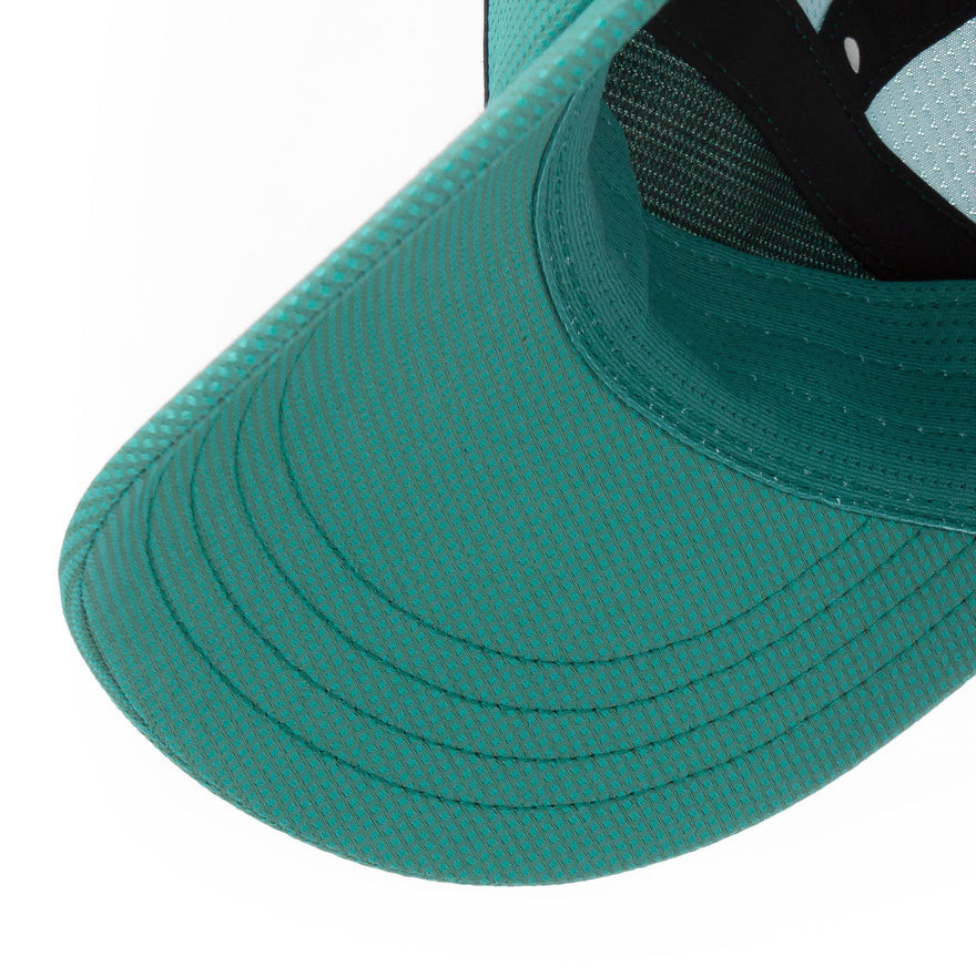 Pre-curved flexible brim provides sun protection and comfort while remaining easy to pack for travel or post-run storage.