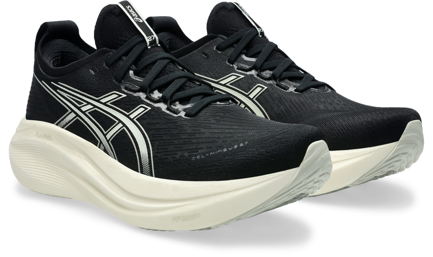 The GEL-NIMBUS® 27 shoe's soft cushioning properties help you feel like you're landing on clouds. This design is revamped to help create a softer and smoother running experience.