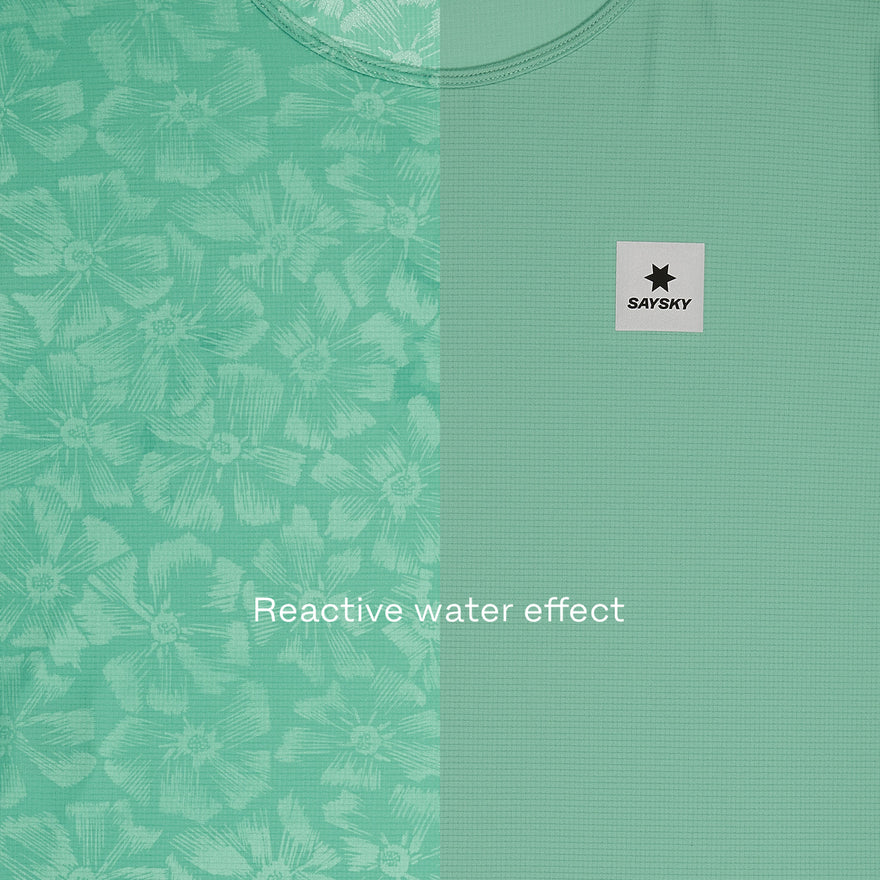 The SAYSKY Reactive Flow Singlet brings together featherlight comfort and innovative design. Made from SAYSKYDRY fabric, it wicks moisture, dries quickly, and feels soft against the skin for distraction-free movement. A hidden flower print is revealed with sweat or water, adding a bold and personal touch mid-run. Cut with wide arm openings to prevent chafing, it's made for speed and freedom.